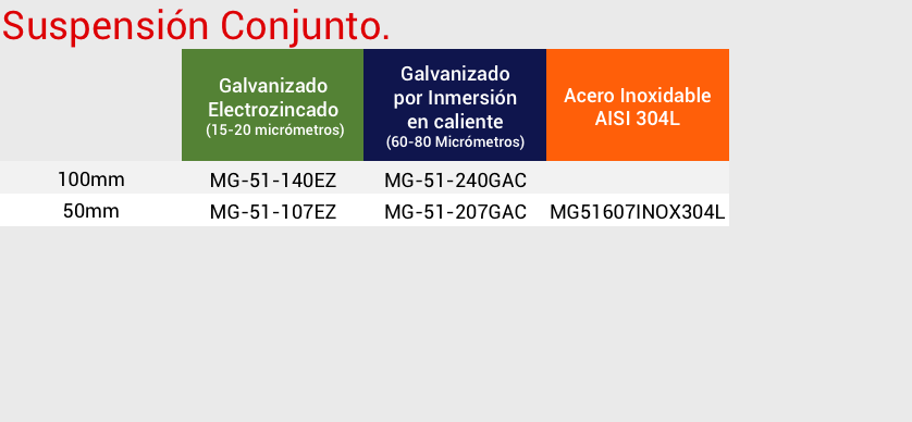 Suspensi�n Conjunto Ancho 100 / 50 mm